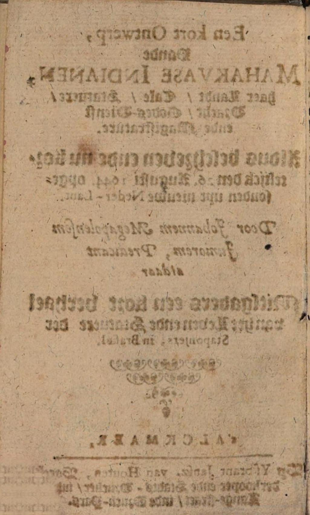 A Short Account of the Mohawk Indians, their Country, Language, Stature, Dress, Religion and Government, thus described and recently, August 26, 1644, sent out of New Netherland, by Johannes Megapolensis the younger, Preacher there. Image 007